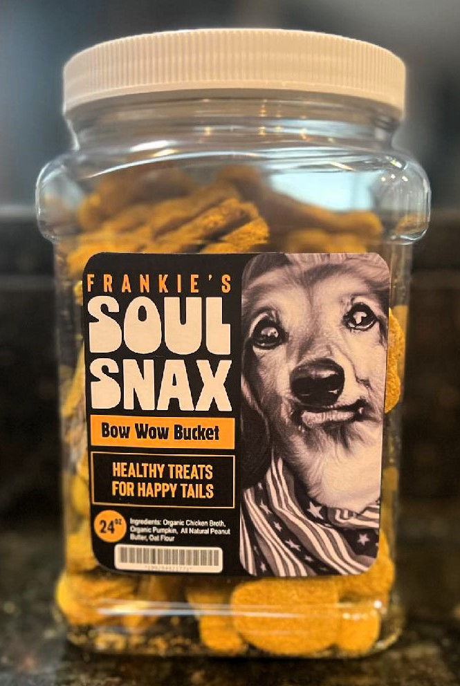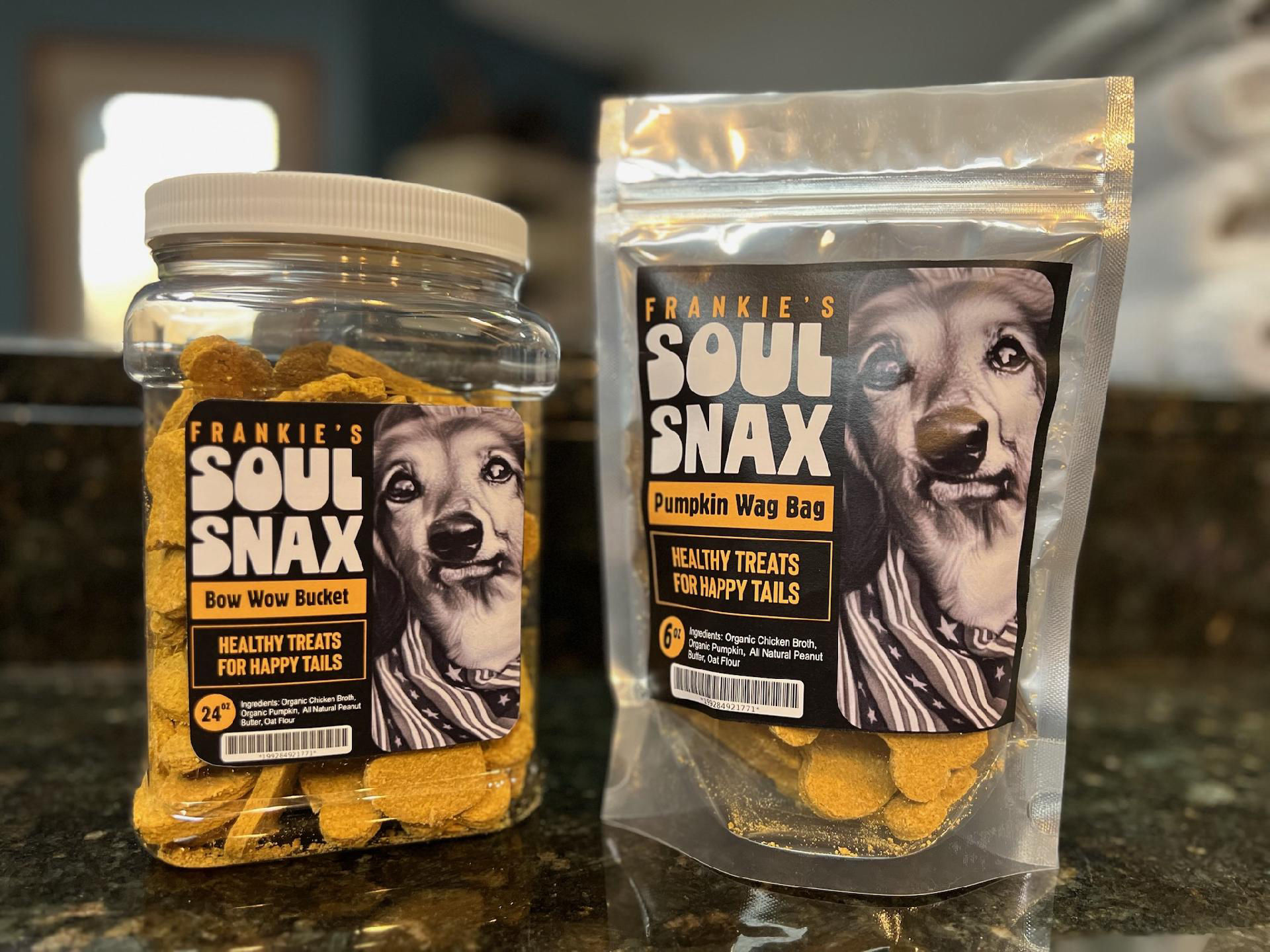 • We use only the finest ingredients for Frankie's Soul Snax...including Organic Chicken Broth, Organic Pumpkin, All Natural Peanut Butter, and Oat Flour